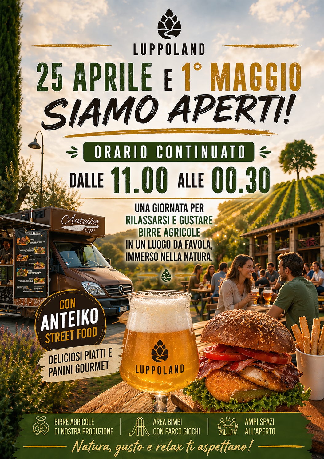 Birre agricole, tantissimo verde tutt’intorno, campi di luppolo e di orzo, un bosco con gli animali, un vivaio a pochi passi, un locale dove assaggiare la Croccaccia, la nostra interpretazione della focaccia. A Luppoland è come essere in un parco divertimenti in piena campagna per gli amanti del buon cibo e del buon bere.